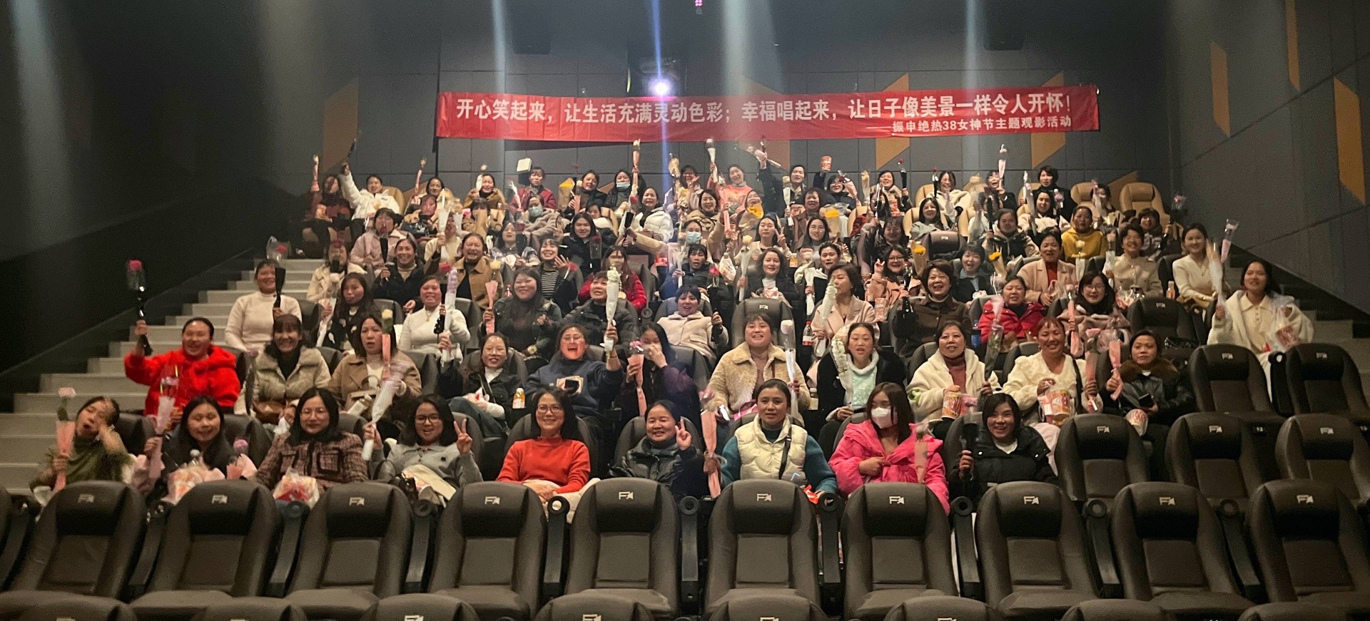 為豐富公司女職工精神文化生活,在第114個“三八”國際勞動婦女節(jié)來臨之際,振申工會組織公司100多名女職工在王店時代影城開展了三八節(jié)主題觀影活動觀看電影《第二十條》,為單位女同胞送上節(jié)日的祝福。希望通過光影的故事帶給大家一場溫暖的視覺體驗,同時能夠舒緩工作壓力、放松心情,增強團隊的凝聚力和向心力,以更飽滿積極的狀態(tài)投入到工作和生活中。